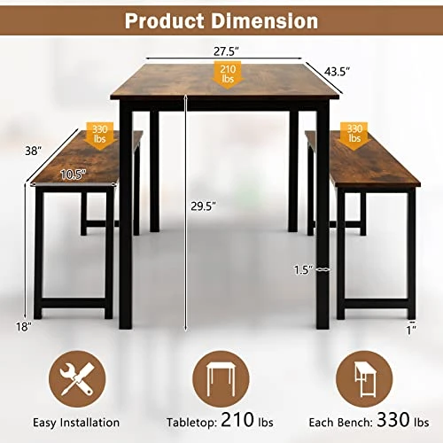 - EASY TO ASSEMBLE & STORE – Our dining table with 2 benches come with clear instruction on hands and just need to assemble legs. Disassembly for moving and store is easy too!