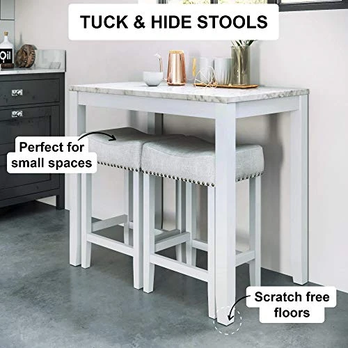 - Table Dimensions: 38″ L x 23″ W x 35″ H, Barstools Dimensions: 17″ L x 13″ W x 24″ H | Weight Limit: 250 lbs.