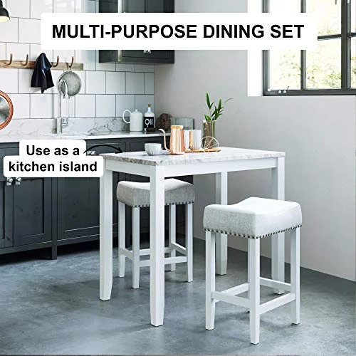 - Tuck the 24-inch fabric seats under the table when you don’t use them to save space in your kitchen or dining room. The Viktor dining set is perfect for everyday use.