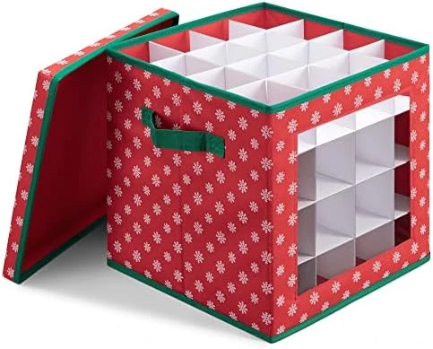 - SPECS: The bauble storage box measures 12 x 12 x 12 inches (30.5 x 30.5 x 30.5 cm) and is made using 60% polypropylene and 40% paperboard.