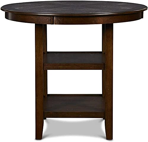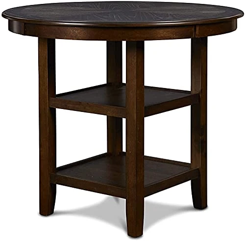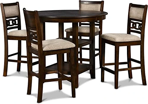 - Quality Counter Height Dining Room Set: New Classic Furniture Round Counter Height Dining Room Table and Chairs Set crafted from Mindi Wood Veneers and Solid Rubber Wood for High-Quality, Long-Lasting Furniture.