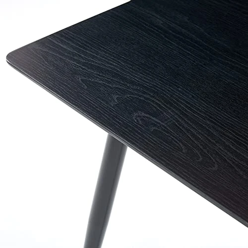 - Modern simple oak look melamine veneer table-top which thickness it to 18 mm, with gold coating accents on the ends of the steel legs. Powder coated finish for durable and corrosion-free.