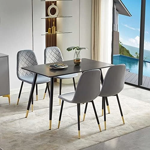 - 4 dining chairs and a dining table provide ample space for entertaining a small group of family or friends. The look of a wood top table is classic, to blend in with any decor.