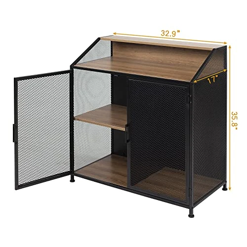 - Stable and Multifunctional – Constructed by high-quality wood and powder coated iron, this industrial bar cabinet is durable for long-term use. It can support to 60 pounds. Not only suitable for placing wine and wine necessities, this cabinet with mesh doors can also be used as a coffee bar. Furthermore, it can be used to put handicraft and books in your study space. It can be put in your living room, kitchen, corridor or a palce of casual meal.