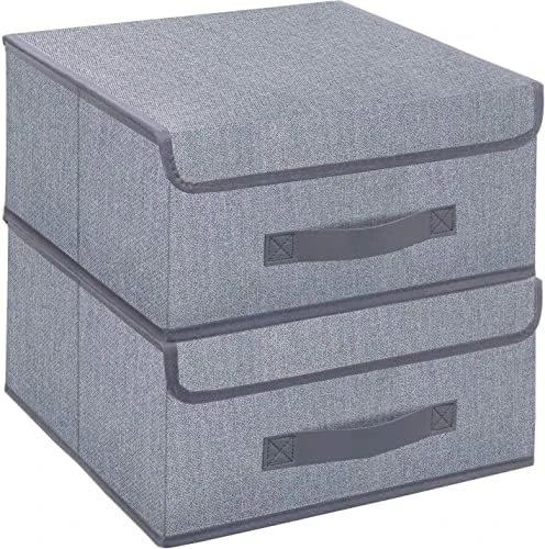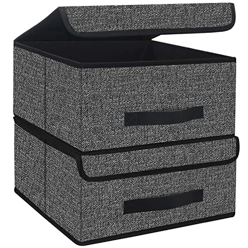 - SPACE SAVING STORAGE BIN – Sturdy side design makes these set of 2 Lidded bins stackable which will take full advantage of your closet shelf, and also can be folded flat to save space when not in use.
