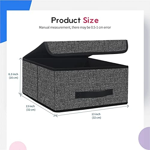 - MAGNET LID & LEATHER HANDELS – Lidded design keep stuffs away from dust; And double Leather handles is easy to carry. Unfold size 12.6″x12.6″x6.3″ makes it fit for standard cube or closet shelf.