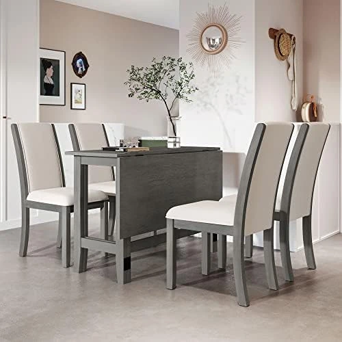 - ☛ STABLE AND DURABLE – This dining table set is made of high-quality material, which ensures beautiful and durable. The countertop is constructed of thick wood for enhanced load-bearing capacity, and also features abrasion-resistant veneer to protect against wear and erosion from everyday use. Table top thickness: 34mm. The bottom of the table has a large contact surface with the ground, which helps to protect the floor.