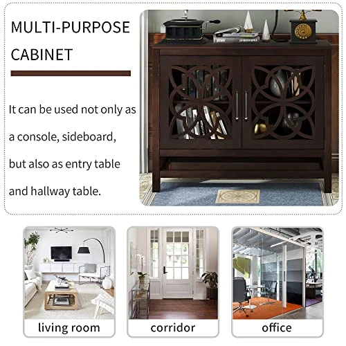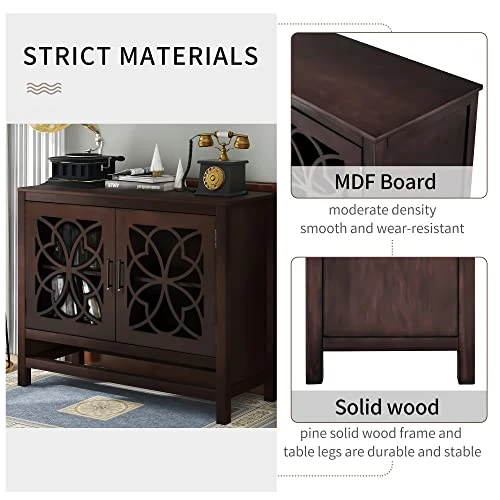 - Beautiful and Functional Cabinet: French door style cabinet featuring hollow-carved wood crafted detailing to for eye-catching and distinctive character,Table top surface can withstand up to165lbs, interior shelving can carry up to 99lbs.Shelf weight capacity: 40lbs. Plastic mats protect your floor.