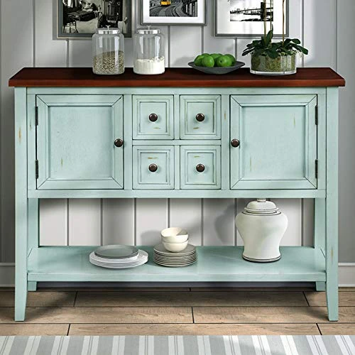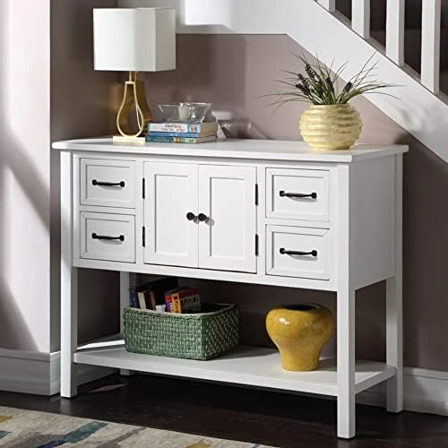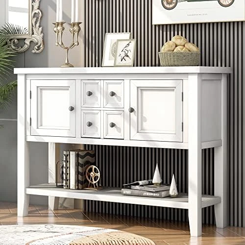 - ❤LARGE STORAGE SPACE: Measurements 46″ L x 15″ W x 34″ H. The Sideboard table comes complete with four storage drawers, two cabinets and bottom shelf, so can provide enough storage space.