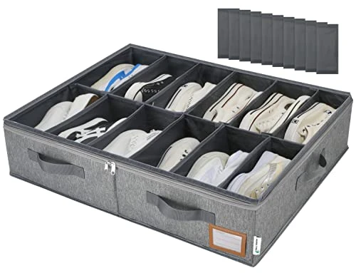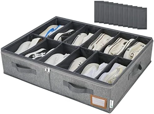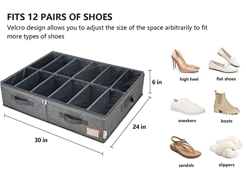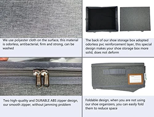 - Adjustable & 2 Strong Zippers Design: Our shoe storage organizers come with strong velcro on each adjustable dividers allows you to adjust the size of the space arbitrarily to fit more types of shoes, such as, high heel, sneakers, flat feet, short boots, canvas shoes, slippers. Two high-quality zipper design, our smooth zipper, without jamming problem. Foldable design, when you are not using our shoe organizers, you can easily fold them to reduce space