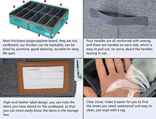 - Clear Window Cover 6 Handles: PENGLONG Shoe organizer solutions come with clear cover, make it easier for you to find the shoes you need, waterproof and easy to clean, just wipe with a rag. 6 handles are all reinforced with sewing, and there are handles on each side, which is easy to pull out, no worry about the handles tearing in use