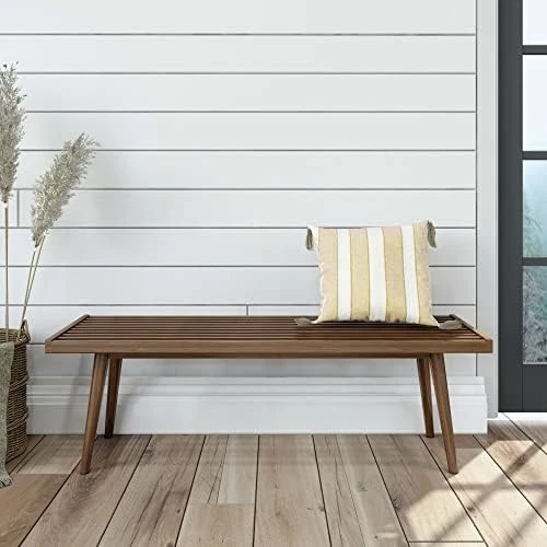 - Mid-Century Styling: A unique, slatted surface and tapered legs offer a timeless, modern style that matches your room design and other mid-century modern decor; Bench is perfect for placement in your entryway, bedroom, or covered outdoor space