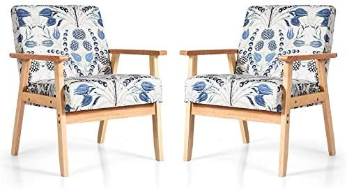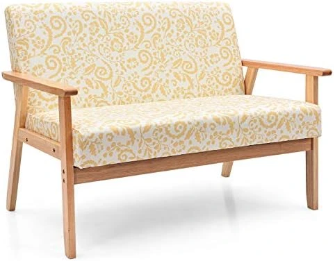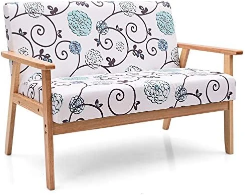 - ❀MORDEN DESIGN – The loveseat adopt curly grass pattern floral design with wooden armrests, combination of modern craft and aesthetics, which can meet people’s need for decorating modern living room