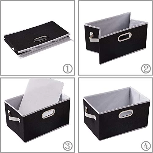 - 【Space Saving】Sturdy side design makes these bins collapsible which will take full advantage of your closet shelf, and also can be folded flat to save space when not in use.