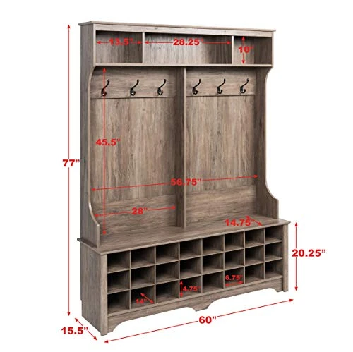 - EFFICIENT STORAGE: Measuring 15. 5″ D x 60″ W x 77″ H with cubbies that measure 14″ D x 6.75″ W x 4.75″ H, this hall tree makes the most of your space without occupying too much of it