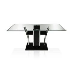 BOWERY HILL Contemporary Glass Top Rectangular Dining Table In Black