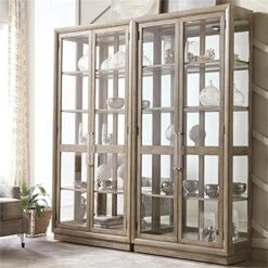 BOWERY HILL Traditional Wood Wall Curio With 2 Adjustale Glass Shelves In Beige