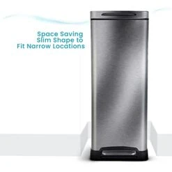 Home Zone Living 12 Gallon Slim Kitchen Trash Can, Stainless Steel, Step Pedal, 45 Liter