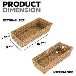 HOMESTEAD Water Hyacinth Storage Baskets, Long Narrow Rectangular Wicker Baskets For Bedroom, Living Room, Bathroom, Shelves – Set Of 2