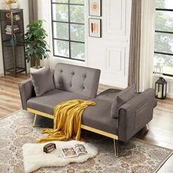 HOMYEDAMIC Velvet Convertible Futon Sofa Bed Memory Foam Futon Couch Sleeper Sofa, Foldable Loveseat Furniture For Compact Small Space, Dorm, Living Room Apartment