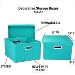 Household Essentials Fabric Storage Boxes With Lids And Handles, Aqua