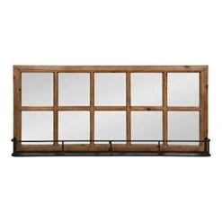 Kate And Laurel Joffrey Farmhouse Arched Mirror, 13 X 30, Walnut Brown, Windowpane Mirror Wall Decor