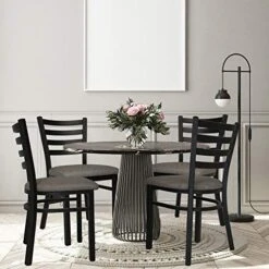 LUCKYERMORE Heavy Duty Metal Dining Room Chair Set Of 2 Upholstered Vinyl Leather Kitchen Chairs With Ergonomic Ladder Back,500lbs Weight Capacity Comfortable Cushion For Home Restaurant