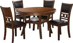 New Classic Furniture Gia 5-Piece Round Dining Set With 1 Dining Table And 4 Chairs, 47-Inch, Brown