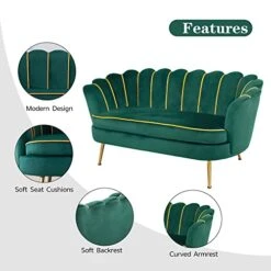 QHITTY Velvet Loveseat, 58” Velvet Sofa Accent Couch Settee Upholstered Chair, 2 Seater Small Loveseat For Small Spaces, Living Room (Green)