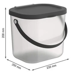 Rotho Albula Storage Box With Lid, Plastic (PP Recycled), Transparent/Anthracite, 6 Litres