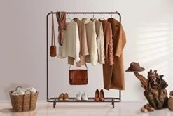 Simple Houseware Clothing Rack With Industrial Pipe And Bottom Shelves, Bronze