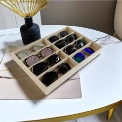Large Beige Premium Quality Velvet Glasses Box Tray Stackable Practical Trade Show Home Use Jewelry Display Organizer