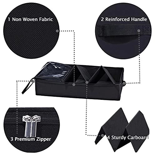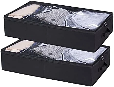 QINSAWAKA Underbed Storage Containers Under Bed Storage Drawer Organizer With Sturdy Structure For Clothes, Blankets, Shoes, Three-side Open Chunky Zippers Firm Sides & Bottom 2 Pack, Black