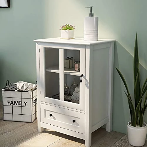 - Practicability:Generous cabinet with a compartment you can customize spacing as you need because the shelf is adjustable.Large drawer supported spaces to put your common things.