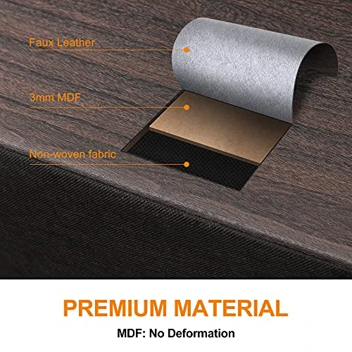 - 【Quality Durable Construction】The sturdy steel frame and durable MDF wooden waterproof countertop provide reliable strength and stability, and are durable. Adjustable feet can be used on non-inclined ground to increase stability and protect against scratches on the floor. Combining non-woven fabrics with imitation wood grain leather fabrics can create a realistic wooden appearance; Wipe clean with a damp cloth and air dry for easy maintenance.