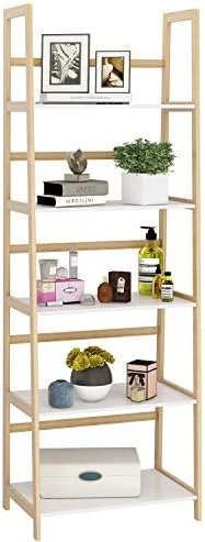 - 5-Tier Open Shelf Design(Industrial Bookcases): Ladder bookshelf 5 tier has a large open storage space for storing and displaying your things. The ladder rack has 5 same size shelves, can be widely used as plant stand, bookcase, display shelf for your photos, books, decors, collectibles etc. Such industrial book shelf can save many home space and tidy your room.