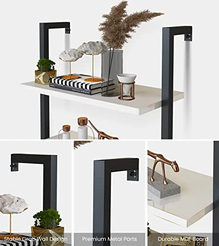 - Premium Material Choose(5-Tier Bookshelf): The open wall-mounted 5-tier bookcases are arranged vertically to maximize the use of space. Crafted from high quality MDF board with durable metal frame, which offers super stability and prevent scratches from floor. Whole book shelf can be the perfect decor and storage space in living room, home office, balcony, bedroom.