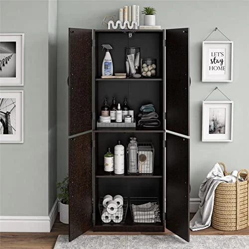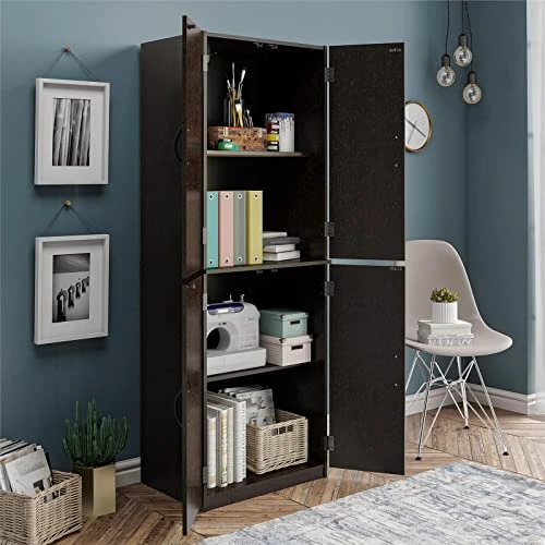 - It offers adjustable shelves, which make it simple to accommodate materials of various sizes. The home storage cabinet is also available in multiple finishes to meet the decor needs of each room. Move it easily from one place to another when needed.