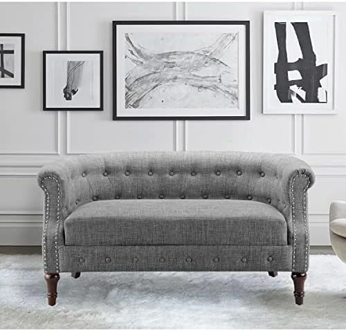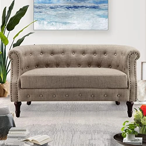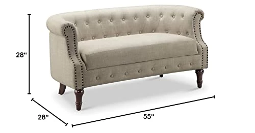 - Special Feature: Arm Rest, Linen Upholstery, Wood Legs, Tufted Back