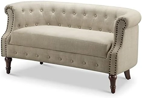 - Special Feature: Natural Linen Upholstered, Chaise Lounge Sofa, Tufted Seat, Tufted Back, High density foam