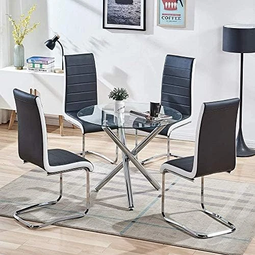 - Dining Table for Small Space – The round glass dinging table is great for kitchen, small rooms, patio, coffee, office etc; As a modern dining table, leisure table, or office table, coffee table,you may find it goes well with most modern decor, perfectly matched with 2-4 chairs.