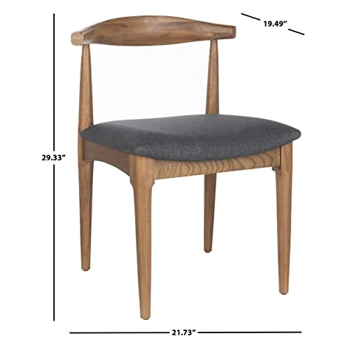 - Retro style chair is crafted with Wood with a neutral brown hue and elegant Dark Grey upholstery