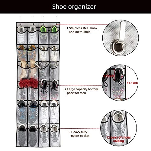 - 🍁【BREATHABLE ECO-FRIENDLY MATERIAL】This door shoe organizer is made of thicker non-woven fabric with nylon mesh pocket which is breathable , eco-friendly. especially wet shoes, don’t worry about getting gross and mildewed,mesh pockets design make the air circulates better and dries out quickly. the net fabric is see-through makes you to find each pair quickly.