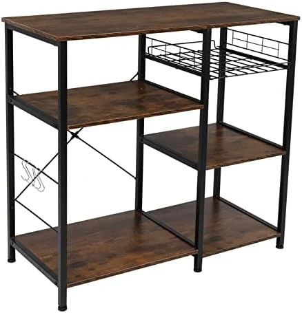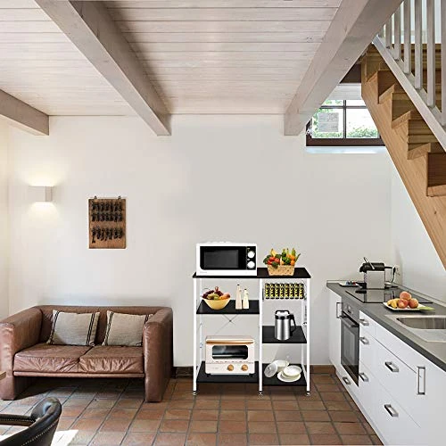 - Perfect As A Kitchen Bakers Rack, Microwave Oven Stand, Kitchen Storage Shelf, Spice Rack Organizer, Bakers Rack, Microwave Stand, Kitchen Workstation Shelf,Office Storage Rack. Fitting In Home Kitchen.Extra Basket Can Store Fruits And Vegetables Or Some Small Kitchen Necessities