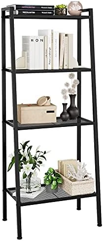 - Ample Storage Space: With 4 tier open shelves, this ladder bookshelf can well fit your daily storage while just occupy a limited space of your house. Each shelf hold up to 35lbs. Adjustable feet perfectly keep the unit balanced, and several protection pads on the back prevent walls from scratches.