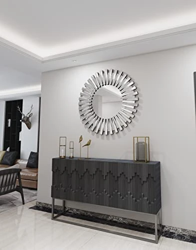 - It’s 31.5 inches big circle mirror with perfect size for hanging on the wall of living room, entryway, or bedroom to adding focal and sparkle on the room