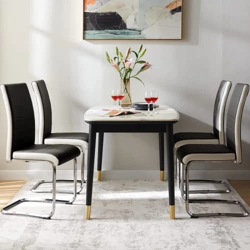 - ✅STURDY & DURABLE – The sturdy dining chairs are complete with C-shaped chrome base which made of thicker metal, offer enough support for most of adults, can hold up to 250 lbs, could be used for long time