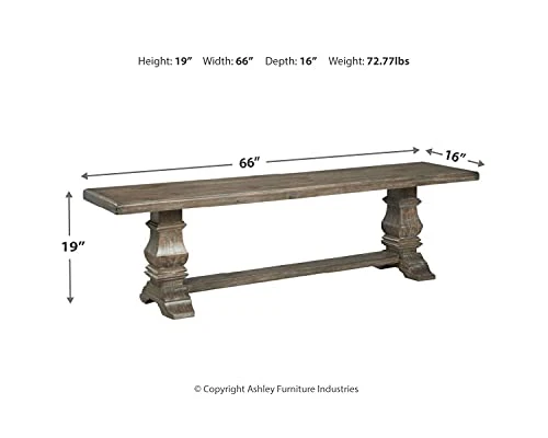 - ACCOMMODATING BENCH: With room for up to three, this standard height dining bench measures 66″W x 16″D x 19.25″H