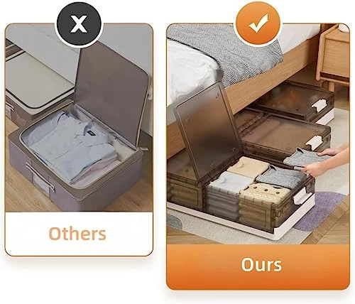 - 【Stackable & Perfect for Narrow Spaces】Compared to ordinary non-woven storage bags, our plastic storage box can be dustproof and not easily deformed, not only for under the bed, the stackable design is also suitable for other places, the groove design allows it to be stacked more stable,very suitable for storing non-daily items, such as clothes, pillow,blanket,toy, books, quilts, etc.(Please confirm the height of the bottom of your bed/sofa, must be higher than 8in)