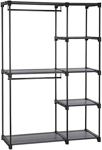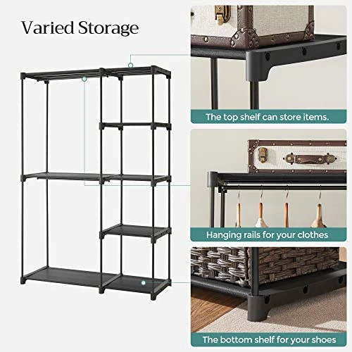 - [Robust and Stable] Built with thick metal tubes and quality plastic connectors, this clothing rack with shelves is sturdy and stable enough to hold up to 17.6 lb per fabric shelf and 44 lb per hanging rod